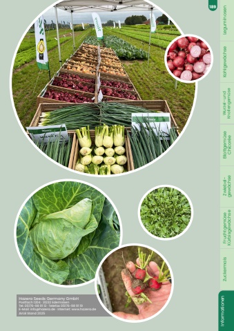 Hazera Seeds Germany GmbHPostfach 1204 %u00b7 31232 EdemissenTel. 05176-98 91 12 %u00b7 Telefax 05176-98 91 19E-Mail: info@hazera.de %u00b7 Internet: www.hazera.de AVLB Stand 2025Leguminosen Kohlgew%u00e4chse Wurzel- und Knollengem%u00fcse Blattgem%u00fcse Chicor%u00e9e Zwiebel- gew%u00e4chse Fruchtgem%u00fcse K%u00fcrbisgew%u00e4chse Zuckermais Informationen189